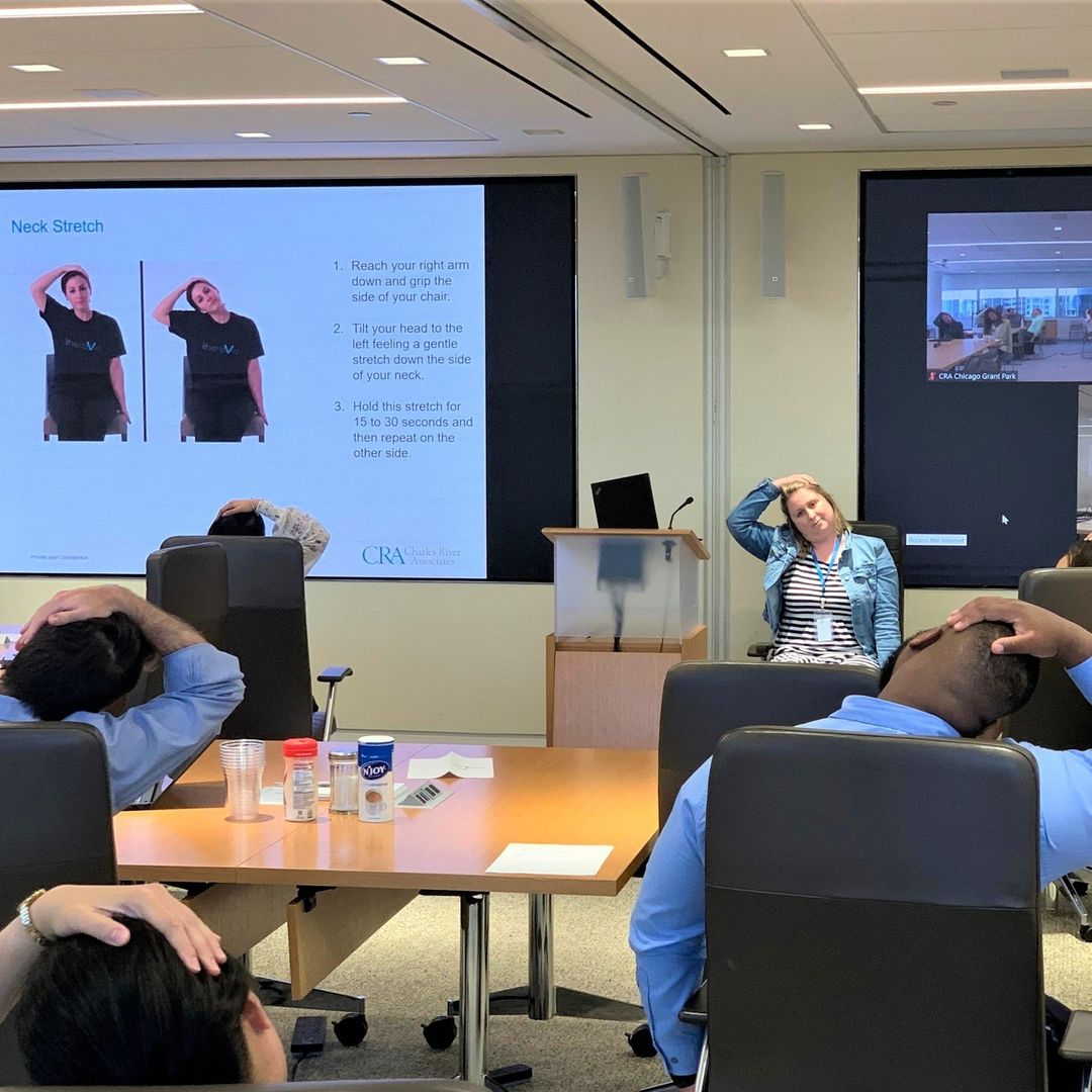 CRA’s Global Benefits team hosted a wellness session at our Boston office to help interns manage their energy and understand the role of well-being in personal and organizational success.