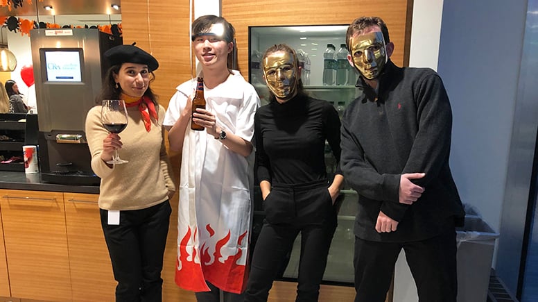 Colleagues dress up for an in-office Halloween celebration