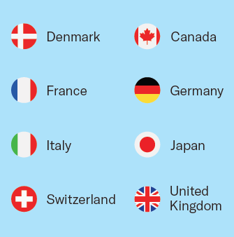 The model provided guidance on reference countries, defined by the G7 countries plus Denmark and Switzerland.